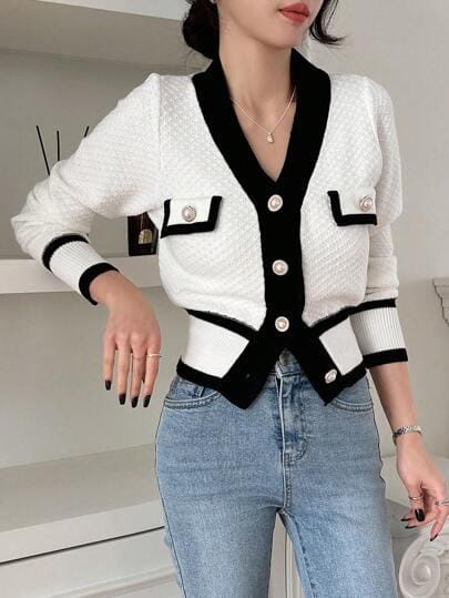 Women's dramatic black and white paneling Jacket blazer S4494242
