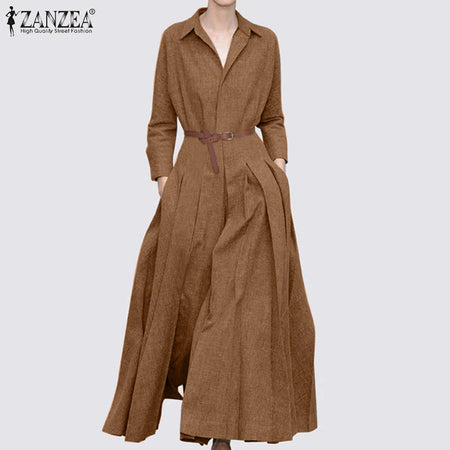 Pleated Turkish Women's Buttoned Ayrobin Dress with Belt - A337