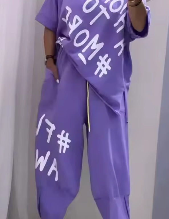 Summer Fashion Letter Print Two Piece Set Women Casual Loose Sporty Style Tshirt Drawstring Sports Pants Two Piece Suit Women.