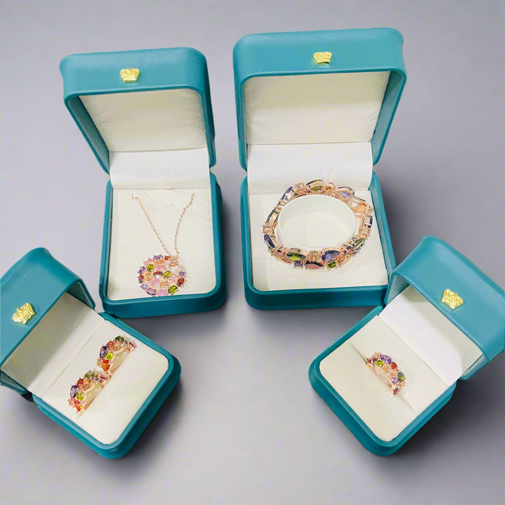 Rose Gold Color Multi Cubic Zirconia Charming Jewelry Sets For Elegant Women or Girls Beautiful Gift