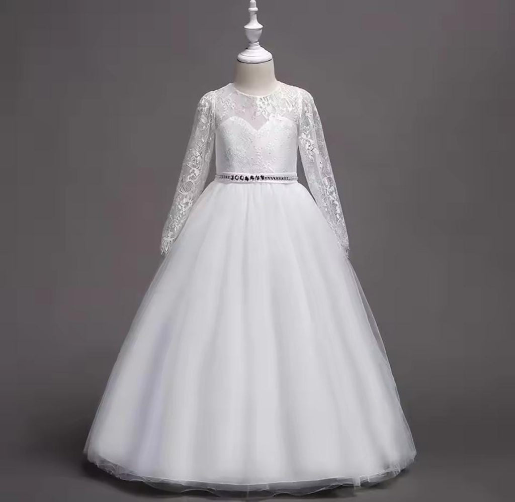 Elegant Long Sleeve Lace Tulle Flower Girl Dress, Good Quality Princess Dress for Wedding, Pageant, Birthday Party Dress.