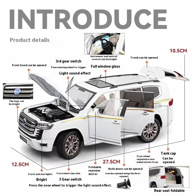 1/18 Scale Toyotaa Land Cruiser LC300 SUV Alloy Car Diecast Toy Vehicles Car Model with Openable Doors & Sound, Light Pull Back car Toys for Kids [Big Size] (White)