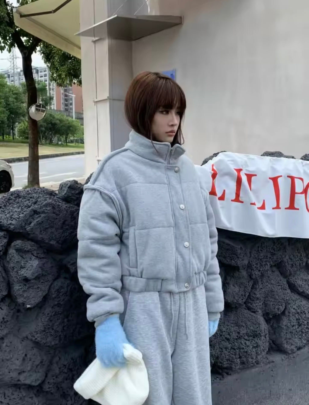 Simple Gray Stand Collar Short Coat Women 2025 Autumn Winter New Thicked Warm Tops Mujer Y2k Parkas Zipper Jackets