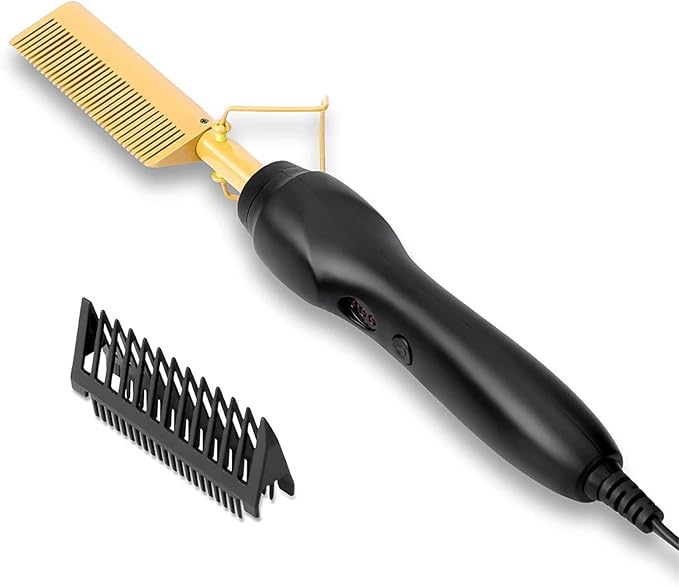 • 【Ceramic Hot Comb】The heated ceramic-coated electric hot combcomb transmits uniform ceramic heat without damage leaving your hair shiny silkier and frizz-free Smooths and softens all hairs type.Perfect combination of comb and hair straightener. Use it to comb and straighten you hair naturally.Smooth hair can greatly enhance your personal image and give you a sense of security and tightness.