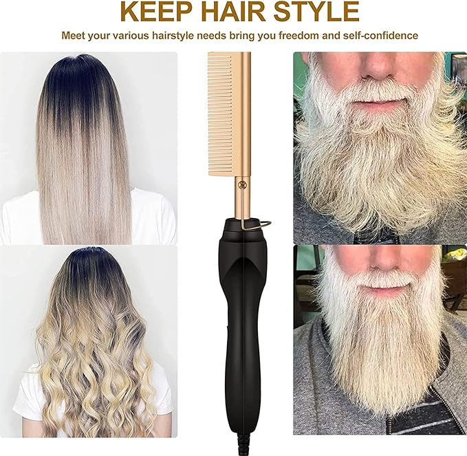 • 【Thoughtful Gift for Couples】The hot comb can be used alone or as a gift. It can be used as a hair straightener for women and used as a beard straightener for men. Great anniversary, Valentine's Day or Christmas Gift.
