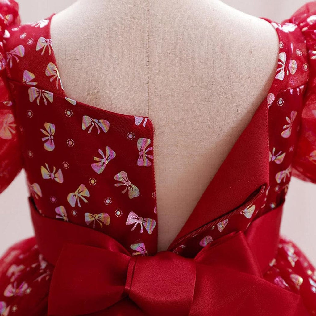 Princess Style Summer Dress for Girls with Puffy Sleeves And Full Skirt Fashionable Courtly Style Performance Outfit.