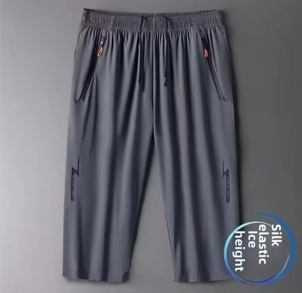 Summer Ice Silk Thin Men's Sports Shorts Loose-fit Medium Pants Quick Dry Breathable 7/8ths Casual Pants Trendy.