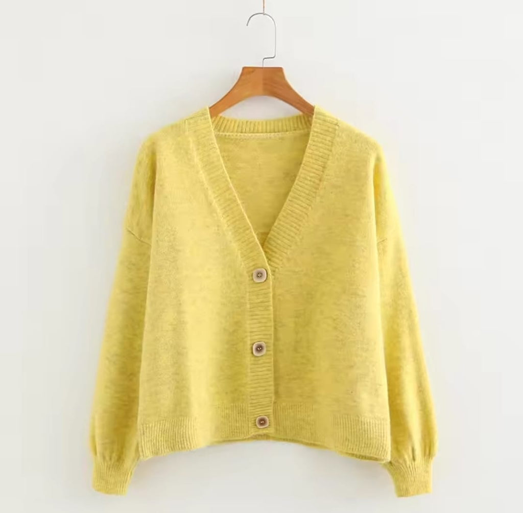Autumn Cardigan Single Breasted Green Pink Yellow Short Women Long Sleeve Loose Caridgan Female Knitted Jacket Women