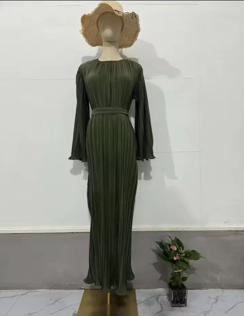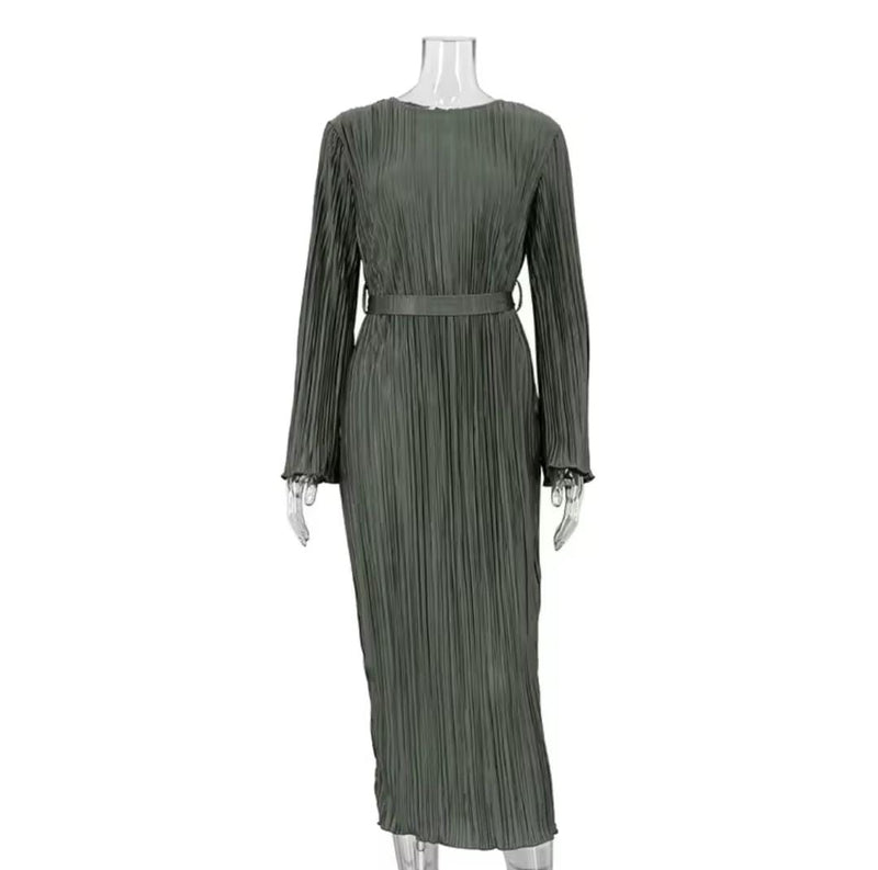 WomenLong Sleeve O Neck Lace Up Folds Evening Long Dress B-375101 | TUZZUT Qatar Online Shopping Order On WhatsApp Skip to content