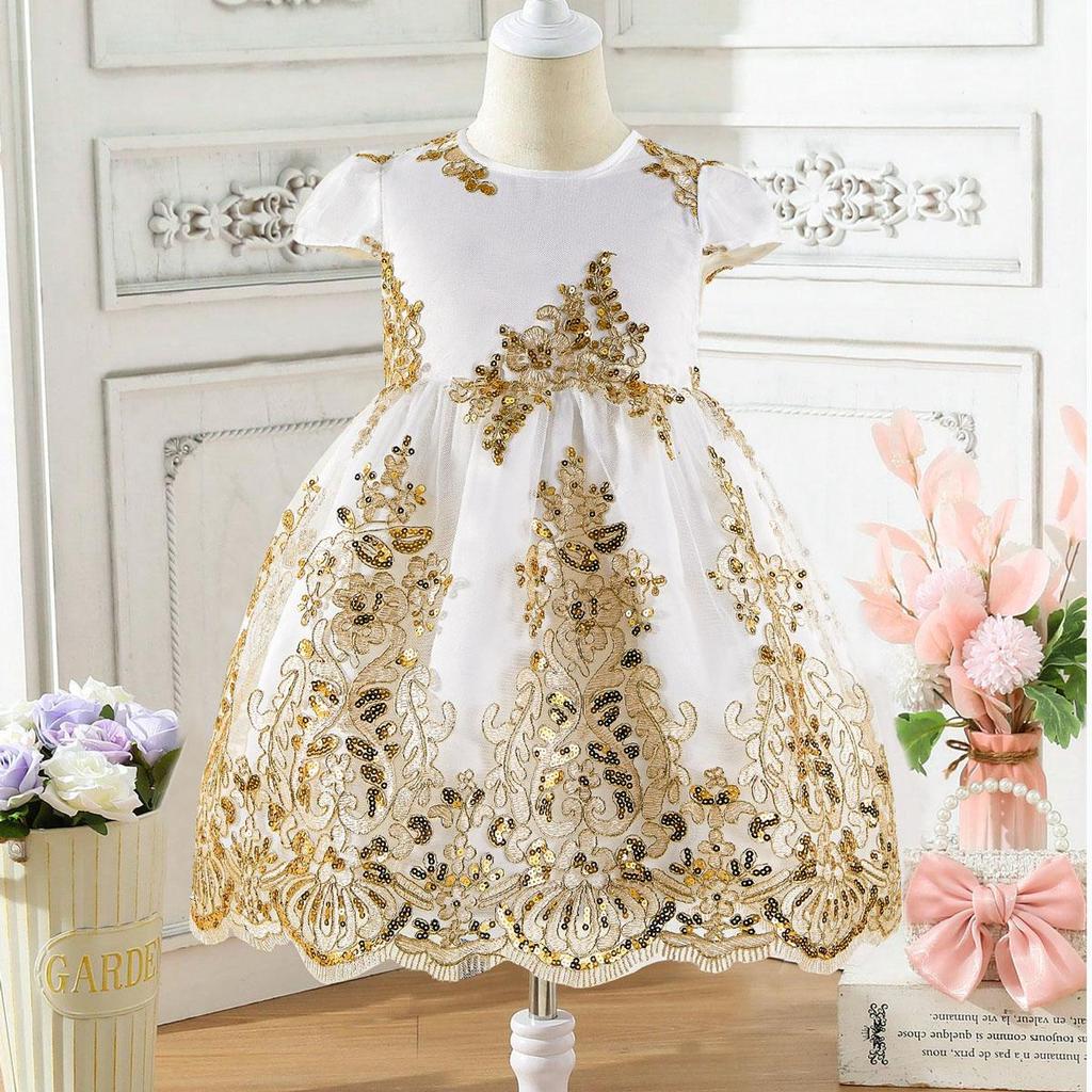 Girl's Gorgeous Elegant Style Golden Lace Dress 1564215 | TUZZUT Qatar Online Shopping Order On WhatsApp Skip to content