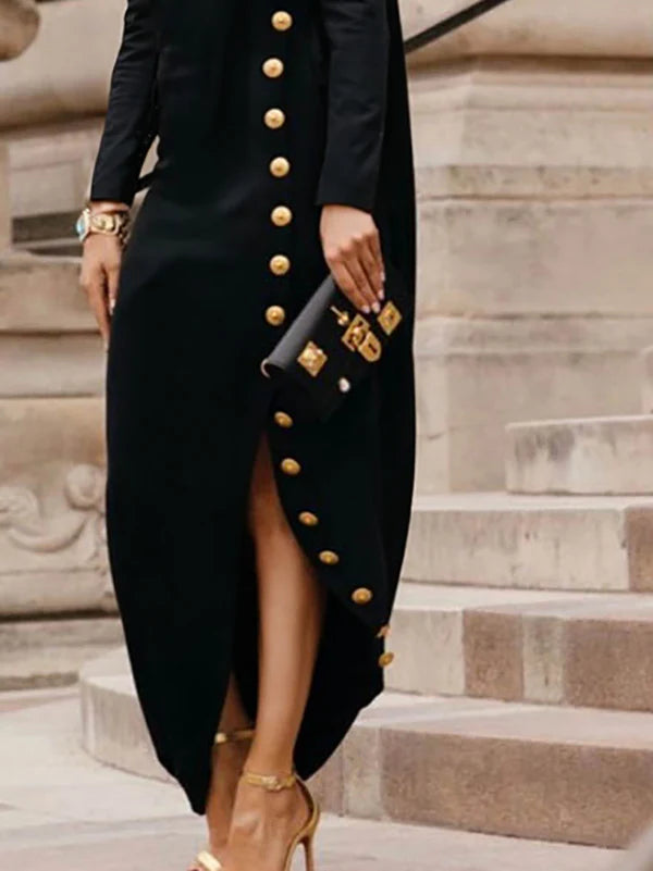 Long Sleeves Loose Asymmetric Buttoned Split-Joint Split-Side Mock Neck Maxi Dresses 173681 | TUZZUT Qatar Online Shopping Order On WhatsApp Skip to content