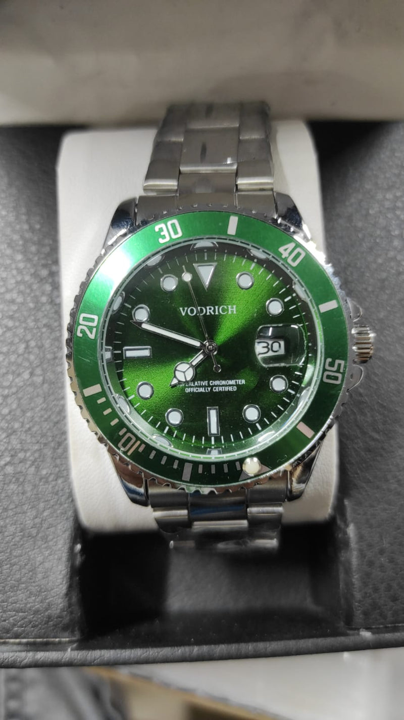 Stainless Steel Watch with Green Dial Waterproof Gift Collection