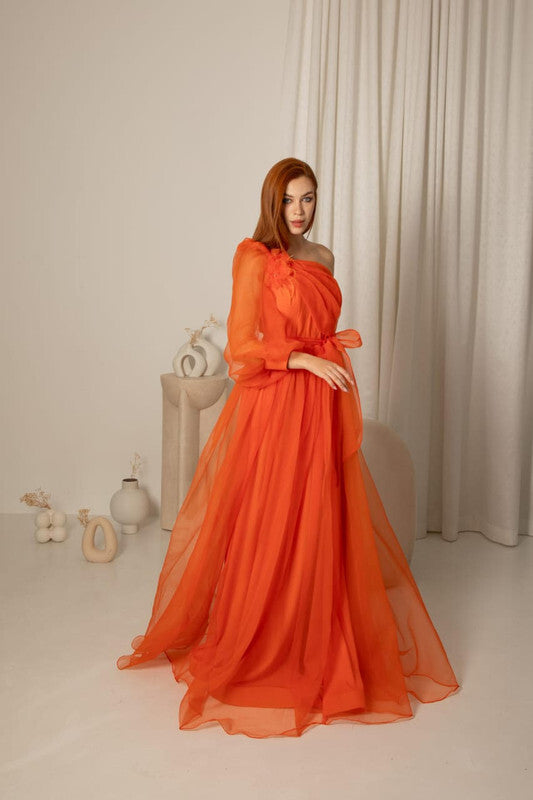One-shoulder Pleated Maxi Dress 134725