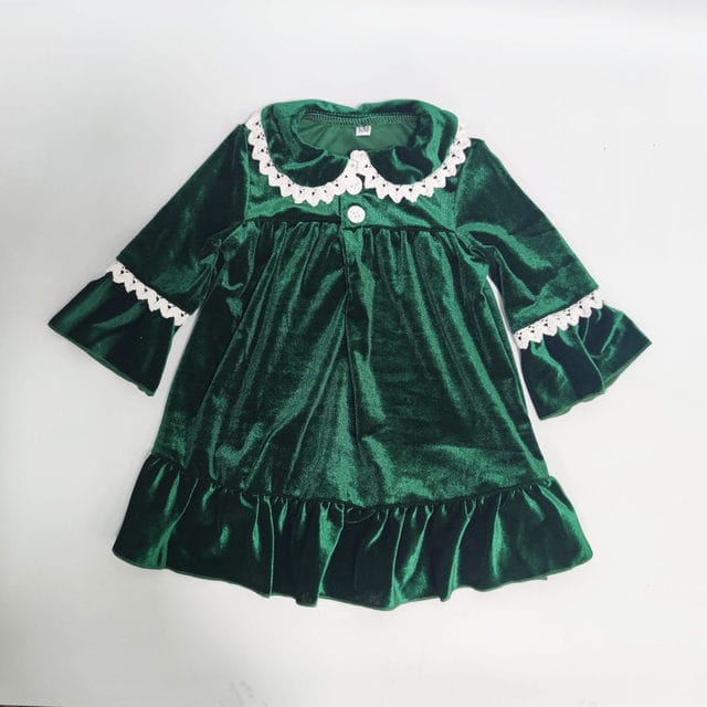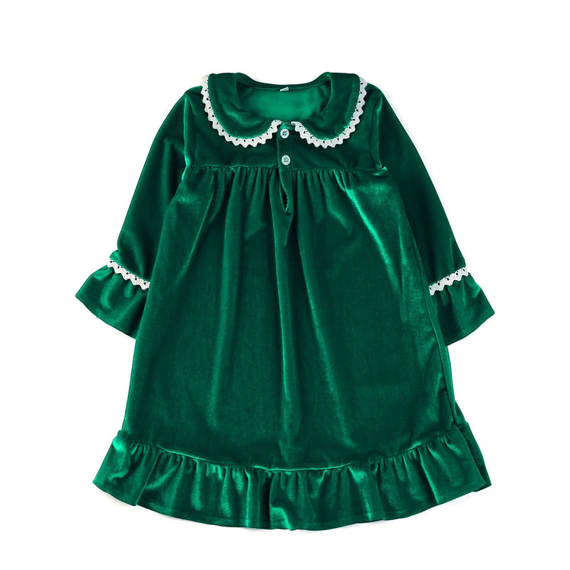 Kid's Velvet Long Princess Style Sleep Dress for Girls in Red And Green with Lace Trim Children's Clothing.