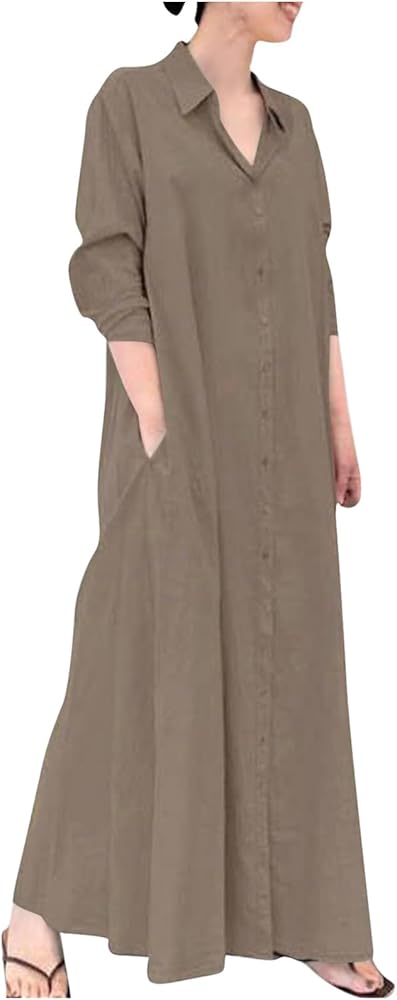 Brown Dresses for Women Party, Summer Maxi Dresses for Women Long Sleeve Long Dresses for Women Casual, Womens Midi Dresses With Sleeves, Solid Color Weekend Summer Wide Mini Dress.