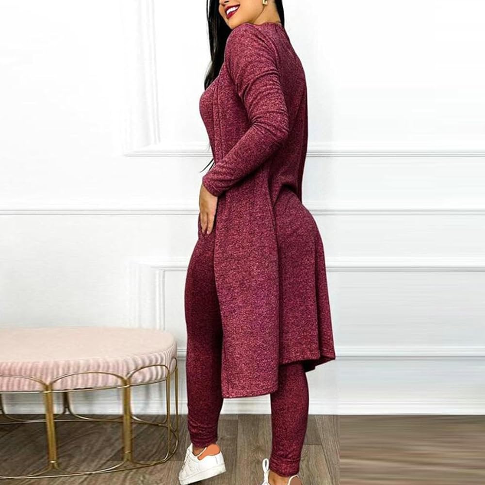 Women's Casual Cardigan Suit, High Waist Pocket Jumpsuits, Drawstring Pants, Pocket Jumpsuit and Cardigan Cover-Up, 2-Piece Sets.