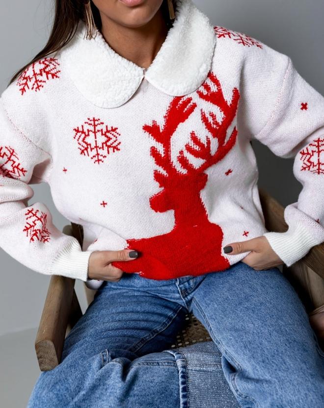 Women's Elegant Reindeer Pullover Knitted Jumper 58758 | TUZZUT Qatar Online Shopping Order On WhatsApp Skip to content