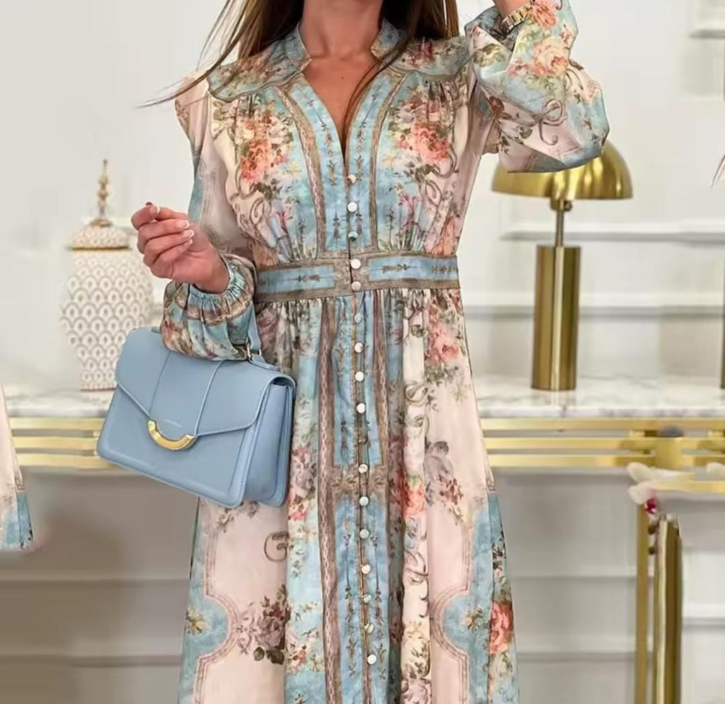 Women's Elegant Retro Printed Long Sleeve Dress 1688509 | TUZZUT Qatar Online Shopping Order On WhatsApp Skip to content