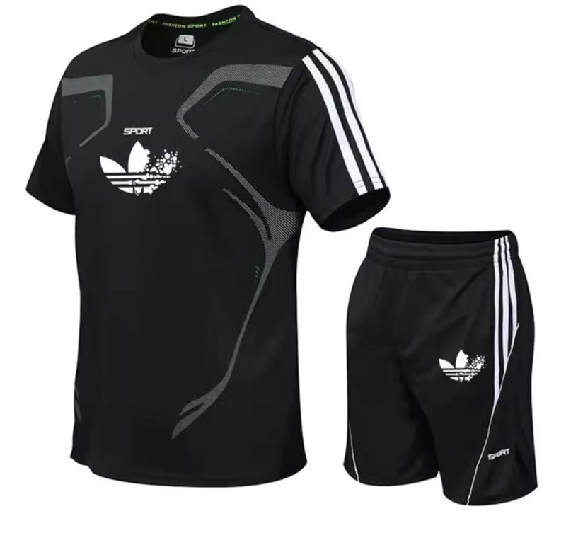 Fashion New Summer Best-selling Outdoor Breathable Sports Set Men Running and Fitness Set Short Sleeve Drying.