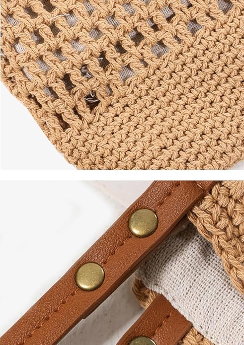 Women Large Summer Beach Tote Shoulder Bags Crochet Handwoven Cotton Knitted Summer Top-handle Bag Hollow Purse Handbags