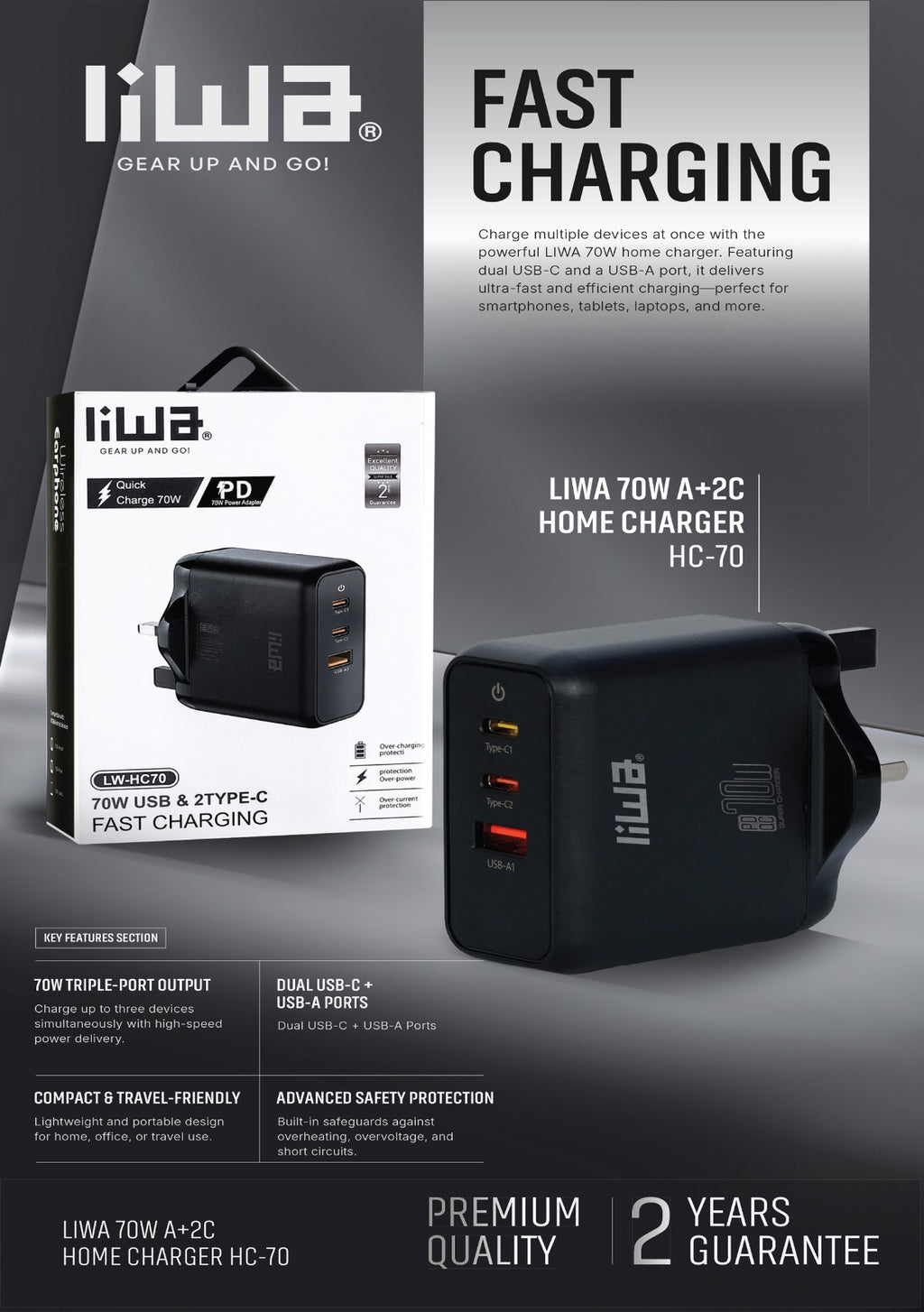 Liwa Quick Fast Charger 70W LW-HC70 (USB /2Type-C) | TUZZUT Qatar Online Shopping Order On WhatsApp Skip to content