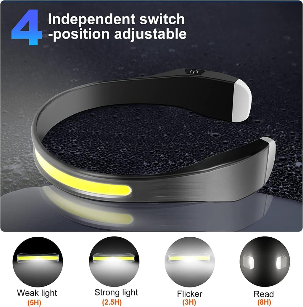 • 【Super Bright 230° Wide-Area Headlamp】This Head Lamp provides high-brightness 230° full viewing angle illumination, and the front COB large floodlight allows you to break through the panoramic view when using.