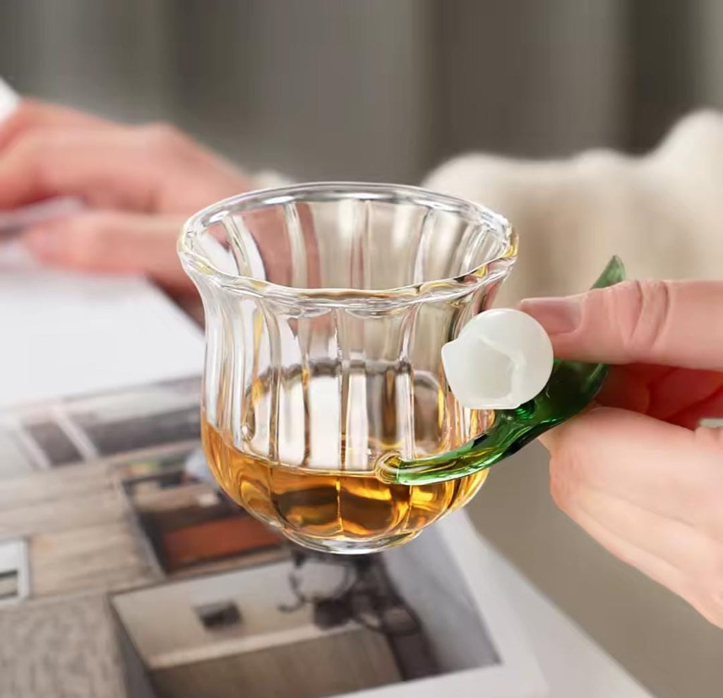 High Value Creative Lily of The Valley Handmade High Borosilicate Glass Retro Heat-resistant Water Cup Black Tea Cup Senior Gift