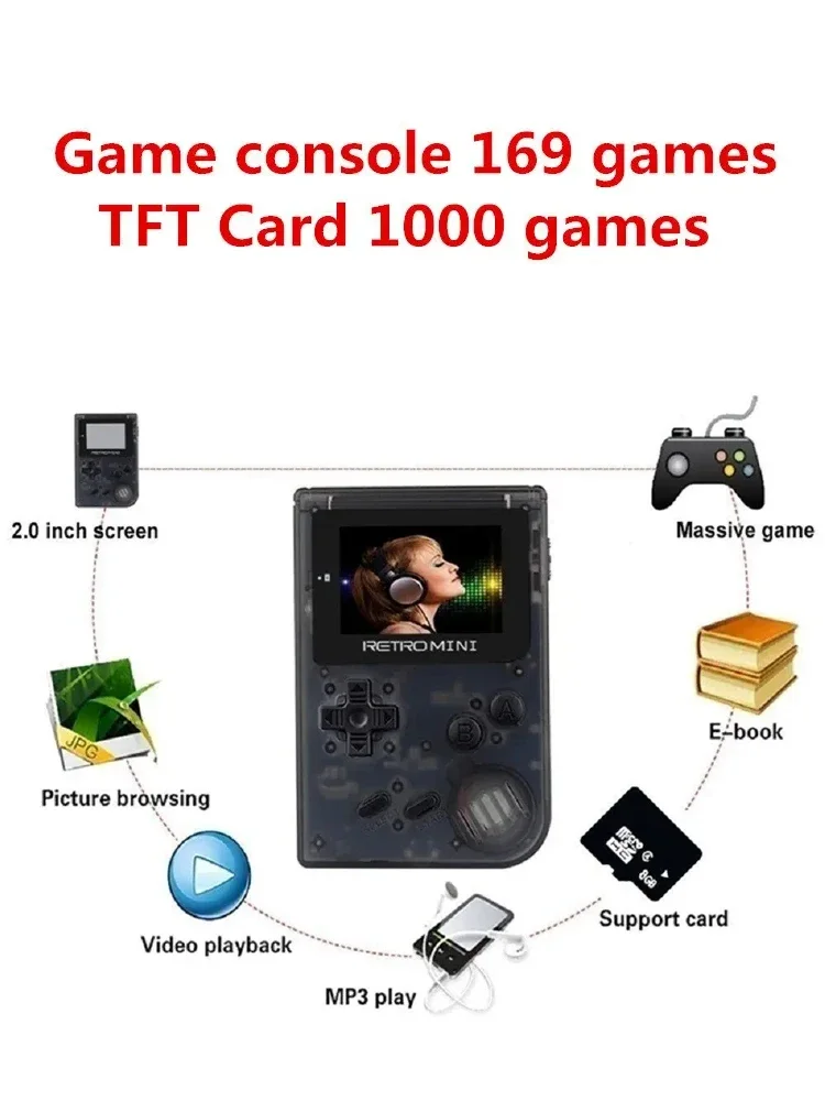 Mini Retro Game Console Portable Pocket Game Emulators 2 Inch Screen 169 Games Best Gift for Kids