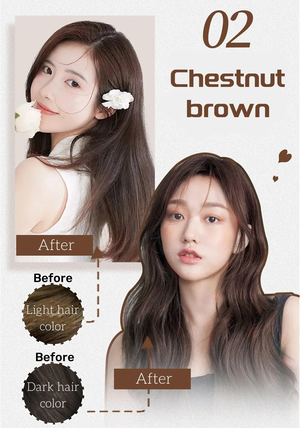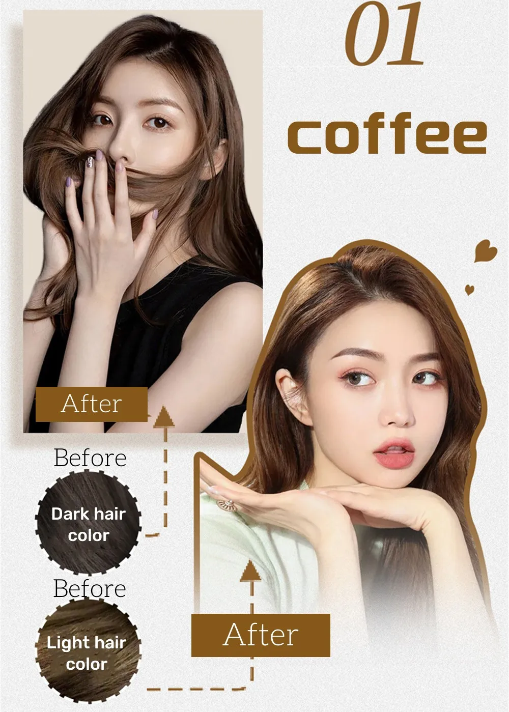 Nursing and oiling formula, brings you a brand new hair coloring experience, contains plant extracts, can care for the hair color fiber from inside and outside, after dyeing, it is as silky as the oiling, effectively covering gray hair.