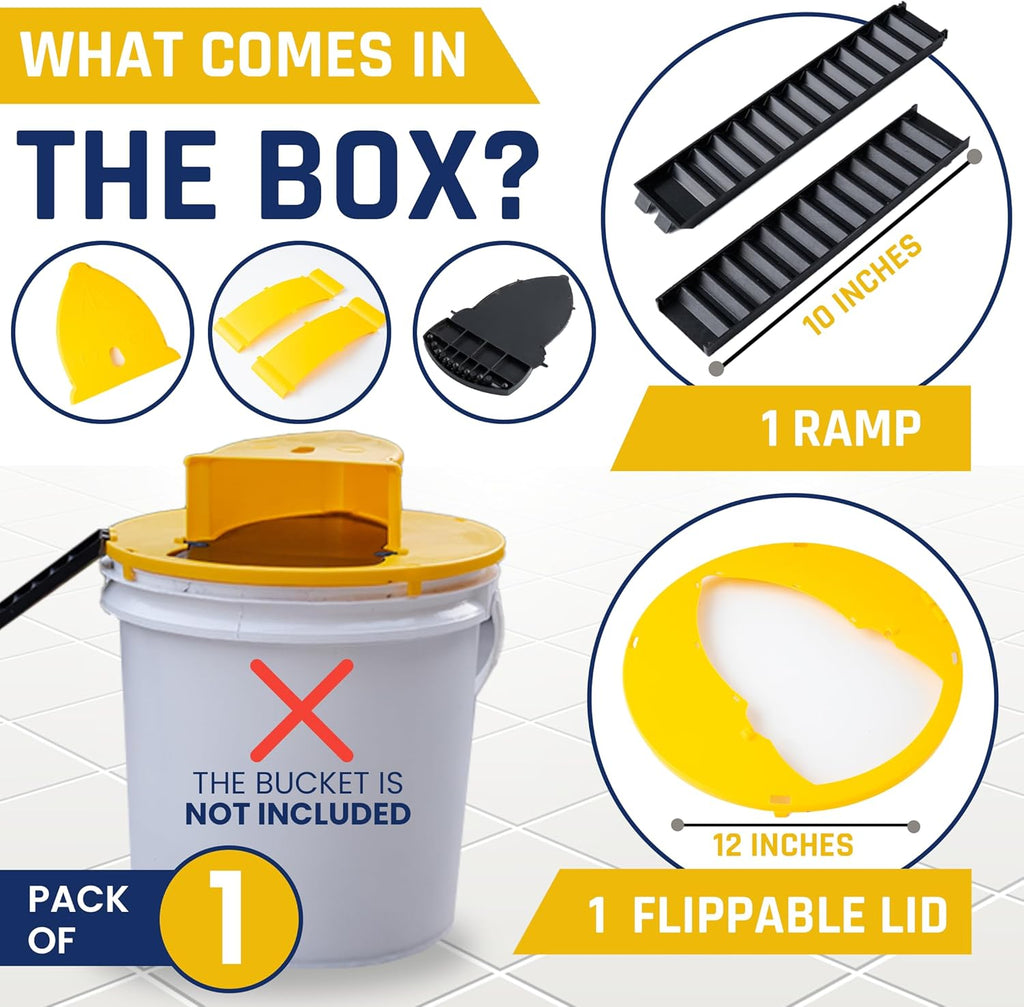 • Assembly Required: These mouse bucket traps come with lid assembly. Snap this bucket rat trap onto a standard 5 gallon and fix the ramp to catch the mouse.