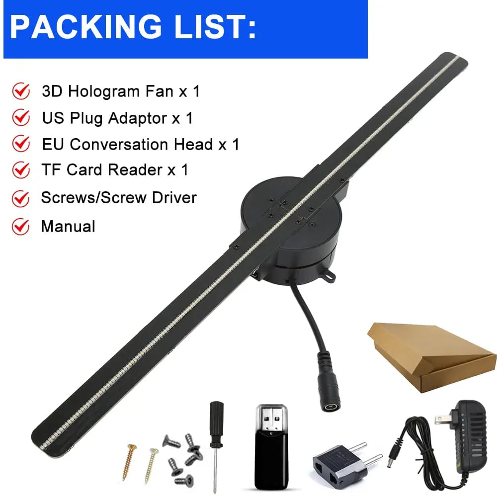 • RINS-Free Images: The LED hologram fan displays images without borders or background, giving you the visual effect of floating in the air and creating the best attraction for your products to move.
