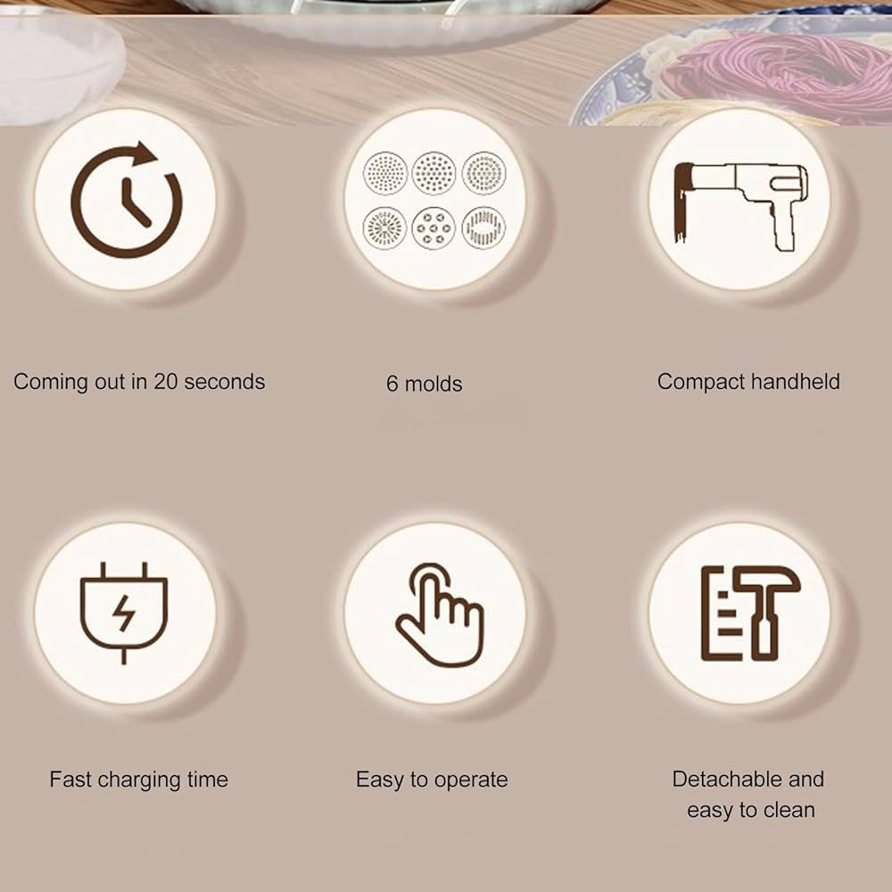 • [Convenient to Use] Our handheld noodle machine with a handheld design, this electric pasta maker is convenient to handle and operate, making pasta making a breeze.