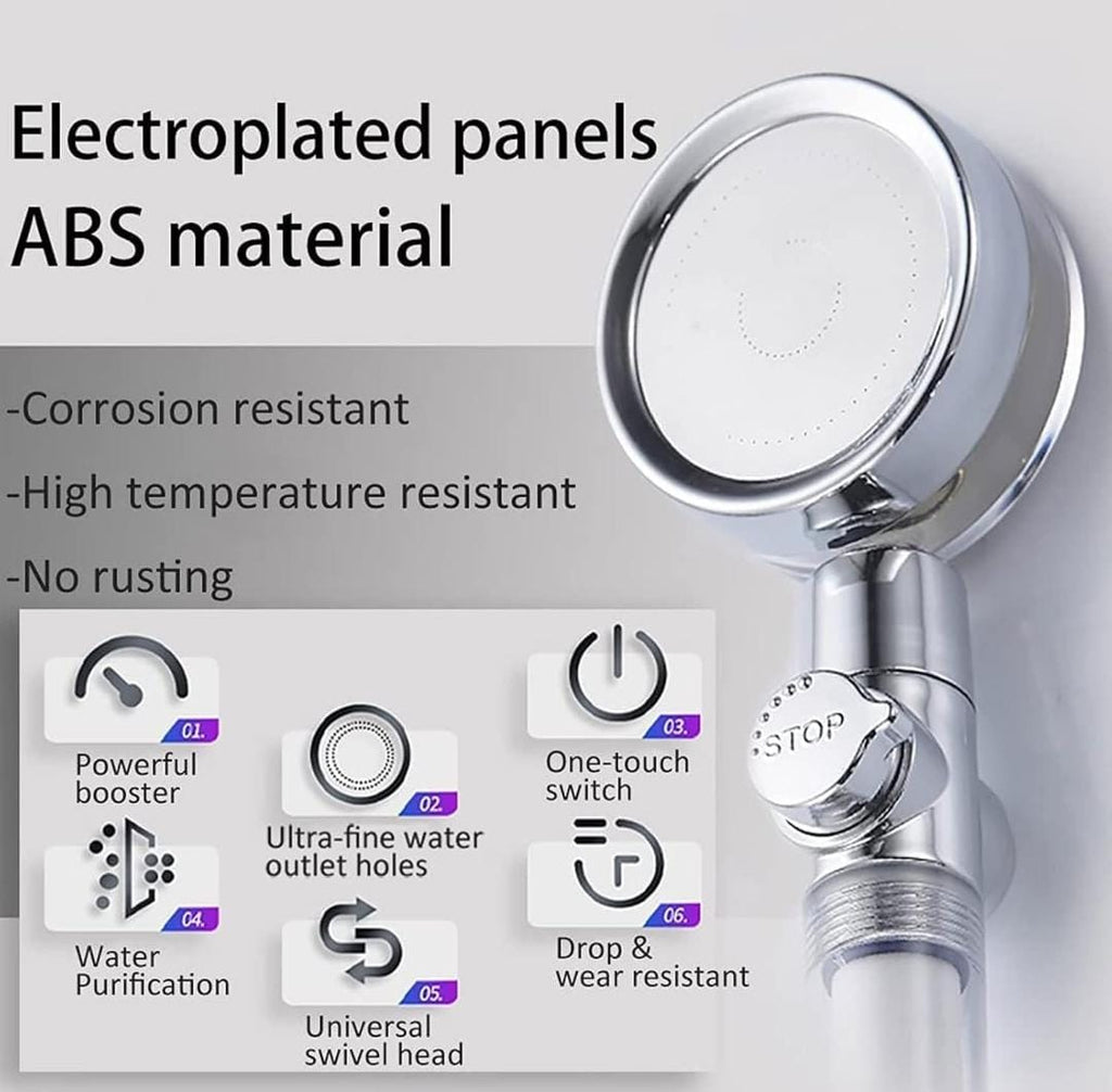 High Pressure Shower Head,360° Rotating Vortex Shower Head,Handheld Propeller Shower head with Filters,Vortex Shower Head Pause Switch Hydro Jet Shower Head Easy Install.
