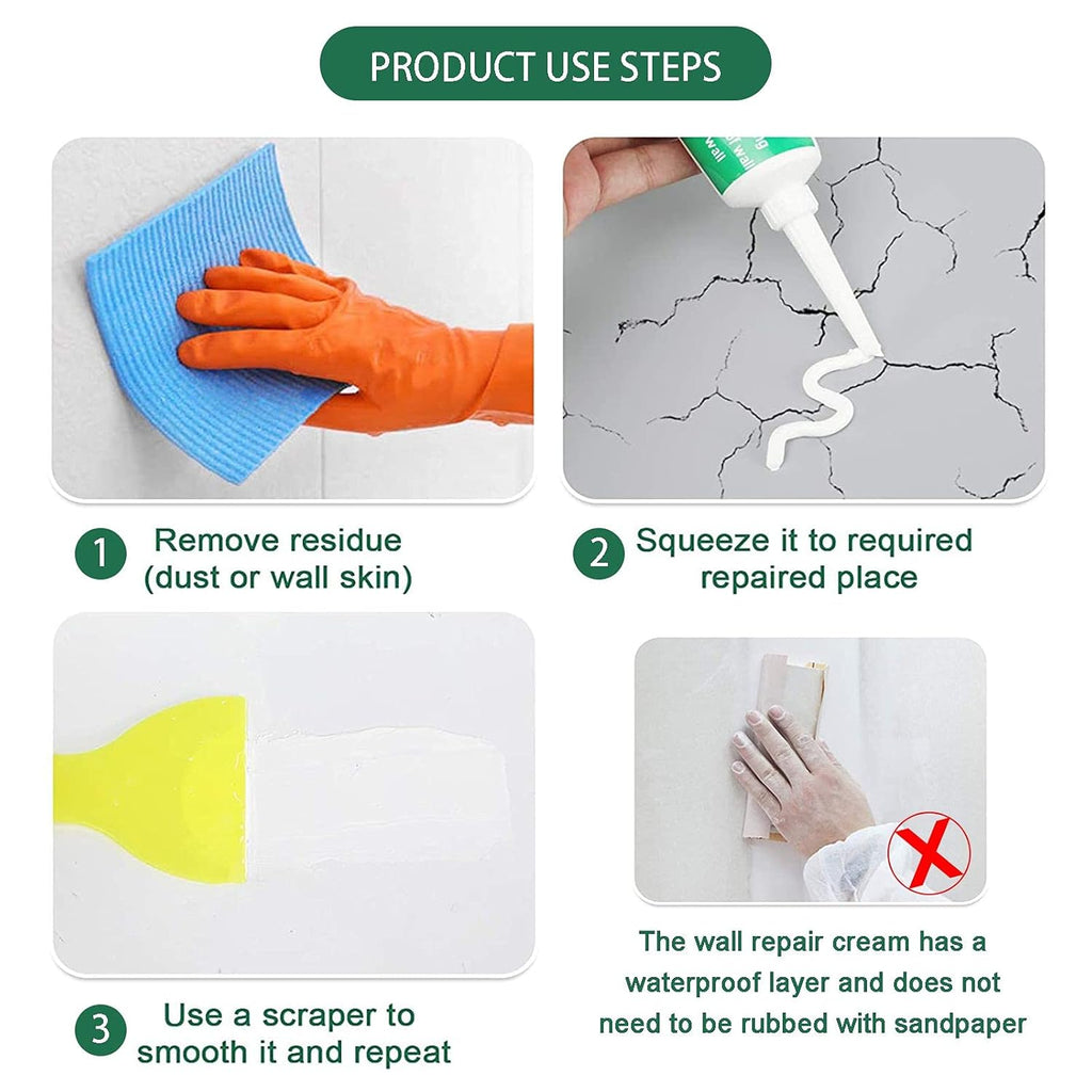 • 【Easy To Use】-Just squeeze the wall repair cream onto the wall that needs to be repaired, use the scraper to scrape the repair cream until appears smooth surface, then waiting 4 hours. (depending on the weather effect to completely dry)