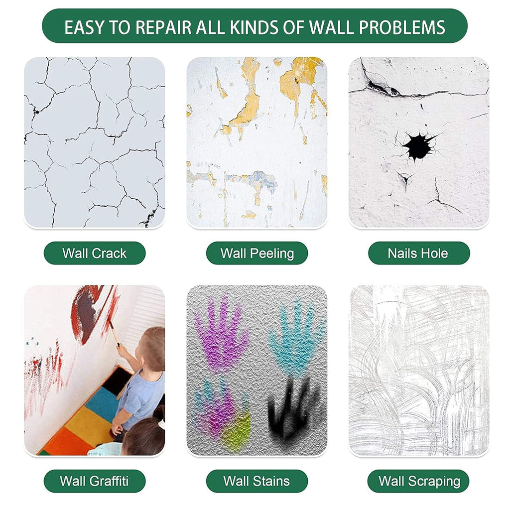 • 【Safe & Quality】-The wall repair cream is made of wall glue, resin, and carbonate cover.The ingredients WATERPROOF, NON-CORROSIVE, FORMALDEHYDE, NO TOXIC SUBSTANCES,is a green environmental protection material.It is harmless to children, adults and pets.