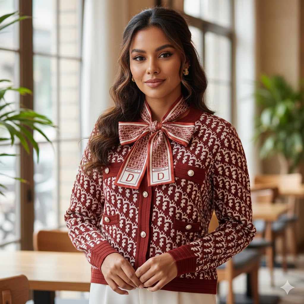 Knitted Vintage Bow Top Sweater 63481 | TUZZUT Qatar Online Shopping Order On WhatsApp Skip to content