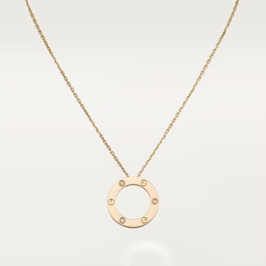 LOVE Pendant 3 Diamonds Yellow Gold Necklace CR107