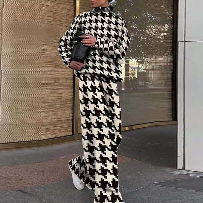 Womens Winter Set.Fuzzy 2 Piece Mesh Flare Wide Leg Pants Set Loose Trousers Set Spandex Brunch Pants Set