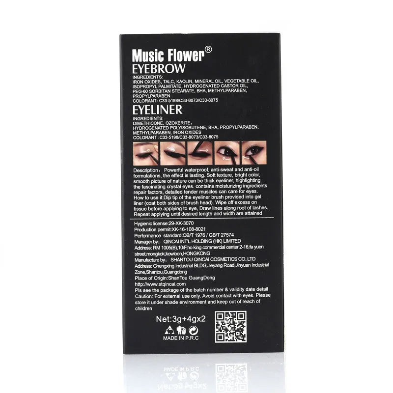 Brown + Black Gel Eyeliner Eyebrow Powder Makeup Set Kit Waterproof Long Lasting Eye Liner Eye Brow Cosmetics