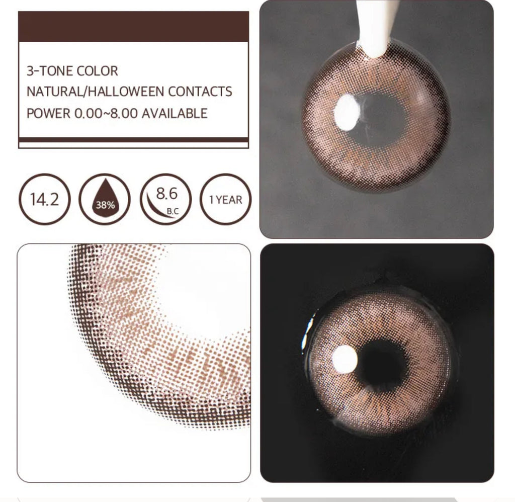 Our Galaxy series three-tone lenses are designed to give your eyes a soft, natural brown glow with delicate amber undertones. The seamless combination of these layered colors creates a subtle yet captivating radiance, perfectly enhancing your natural eye color for a believable, organic look.
