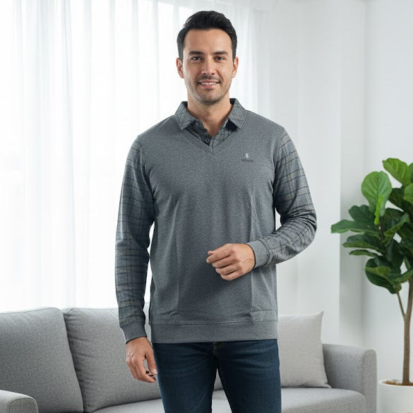 Refine your smart-casual wardrobe with this pre-layered design. The smooth-fitting sweater vest creates a polished silhouette, while the plaid collared shirt underneath adds a subtle, yet striking pattern contrast. Whether you're heading to the office or a weekend outing, this piece provides an instant, put-together look that speaks to timeless elegance and modern convenience."
