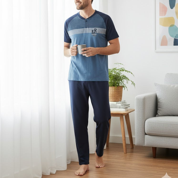 Men's short-sleeve henley shirt with blue stripes S7874500 | TUZZUT Qatar Online Shopping Order On WhatsApp Skip to content