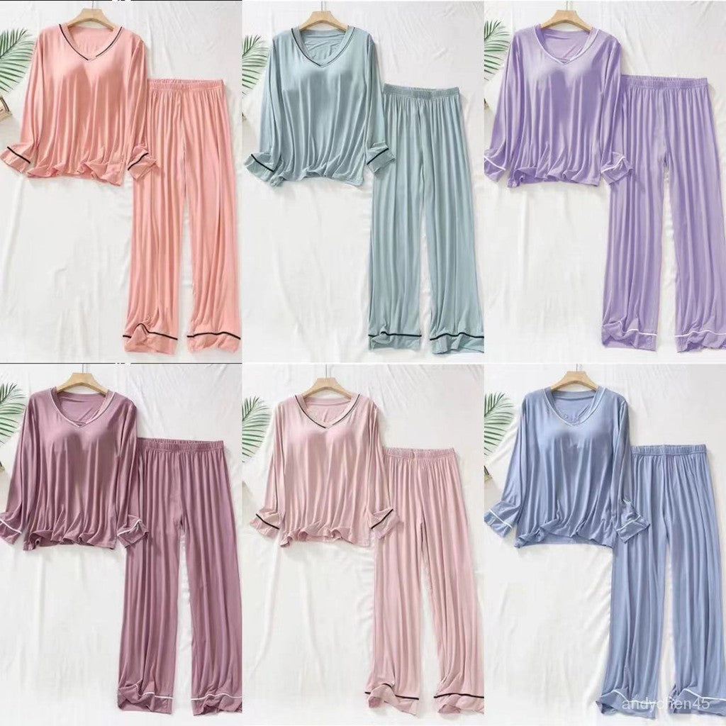 Spring Autumn Popular Women's Long Sleeve Sleepwear Set Integrated Home Clothes with Chest Pad Sweet Cartoon Design.