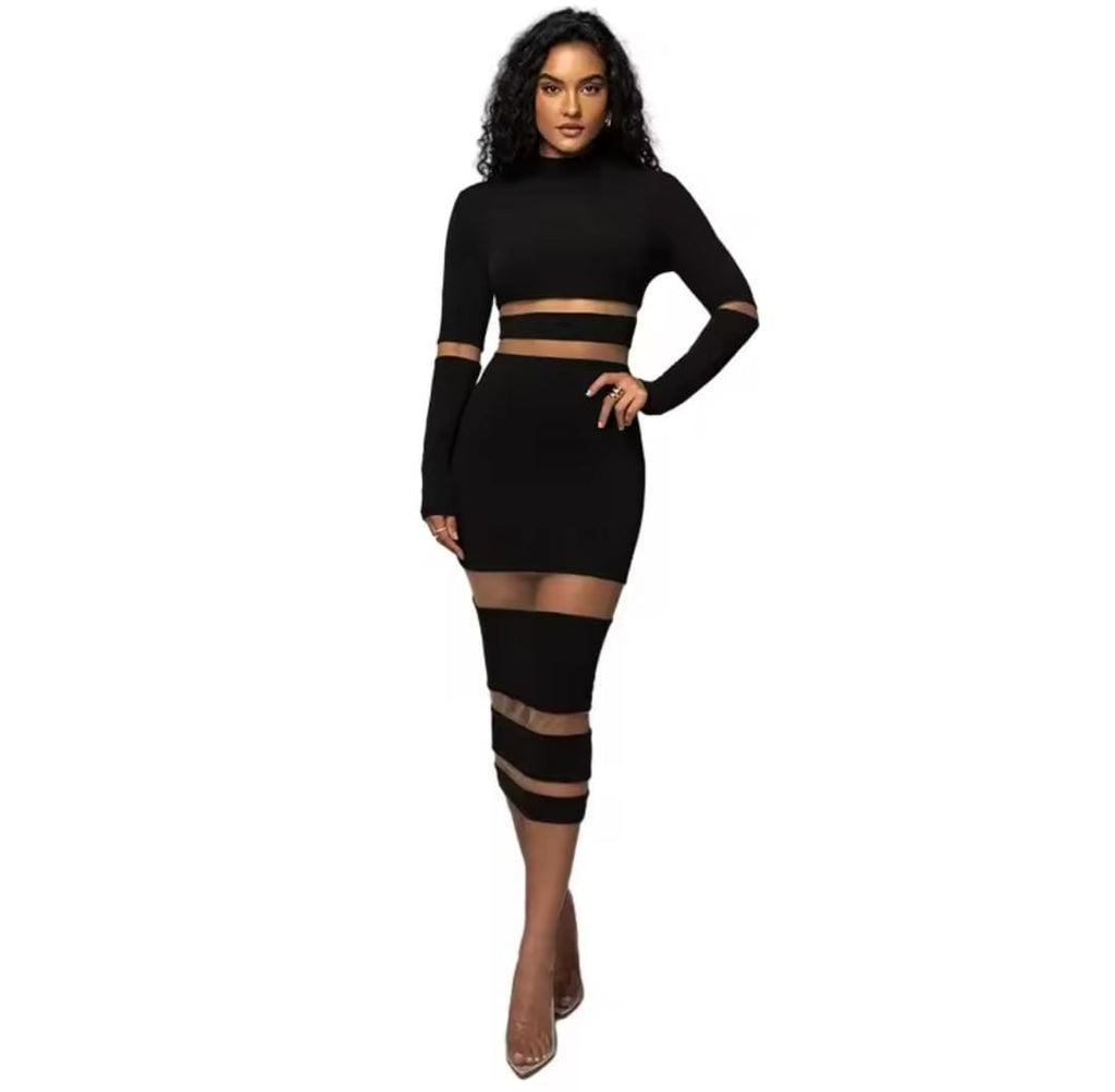2023 Autumn Winter Women's Sexy Patchwork Bodycon Midi Dress Elegant Long Sleeve High Neck Party Club Dress.