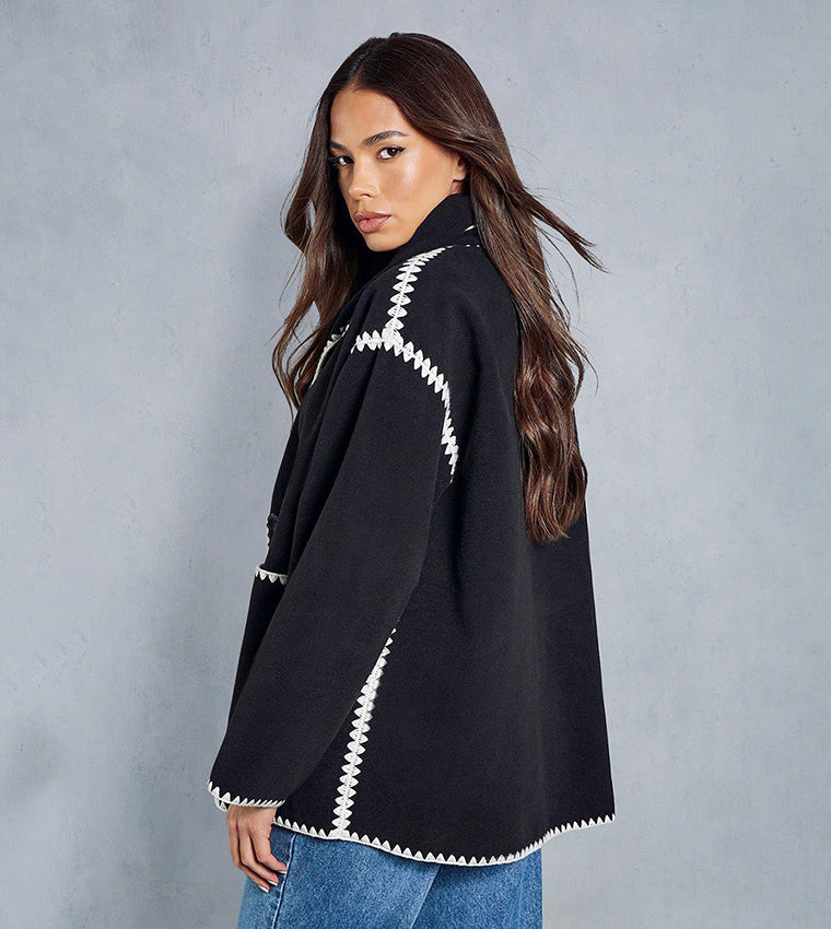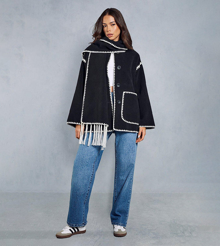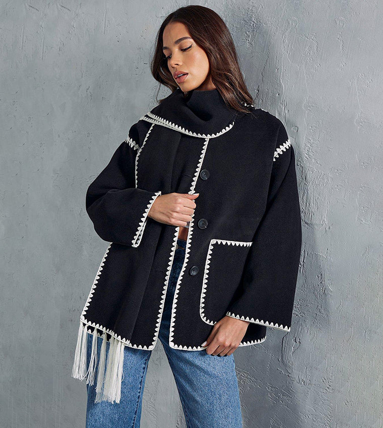 Black Trim Jacket With Matching Scarf 53923 | TUZZUT Qatar Online Shopping Order On WhatsApp Skip to content