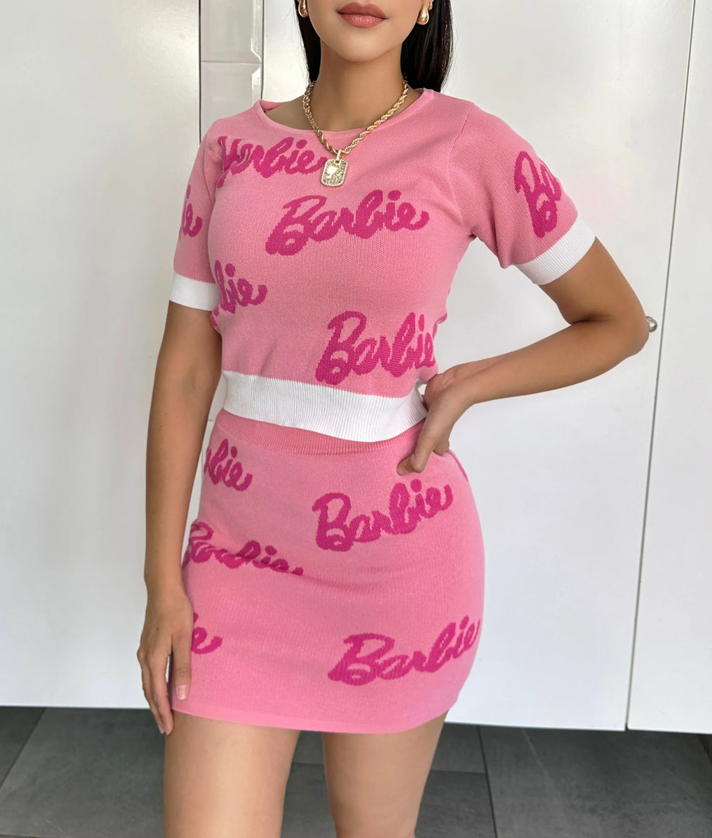 Fashion Letter Knit Top + Short Skinny Mini Skirt