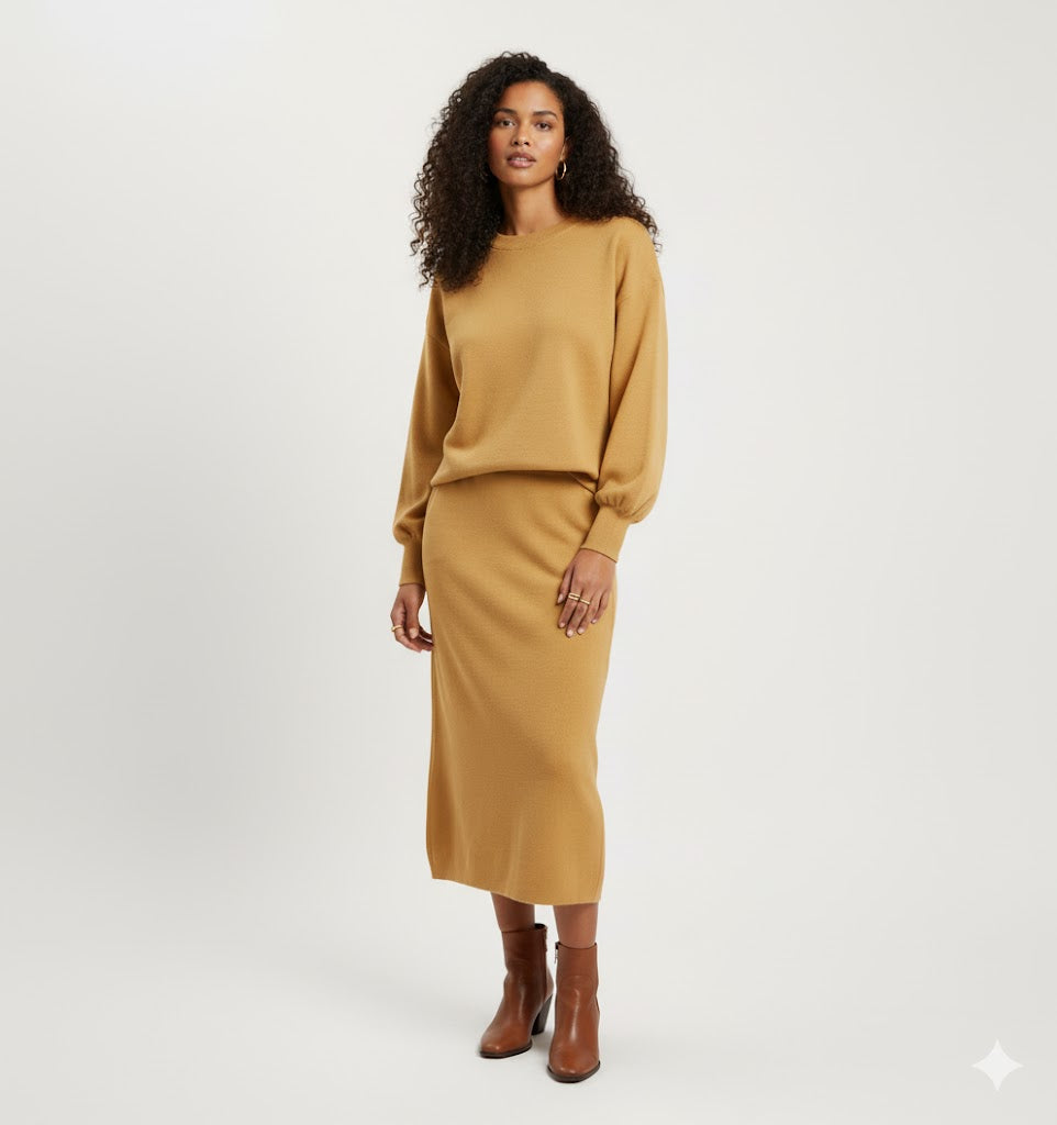 Long Sleeve Sweater + Skirt Two Piece Set B-368202 | TUZZUT Qatar Online Shopping Order On WhatsApp Skip to content