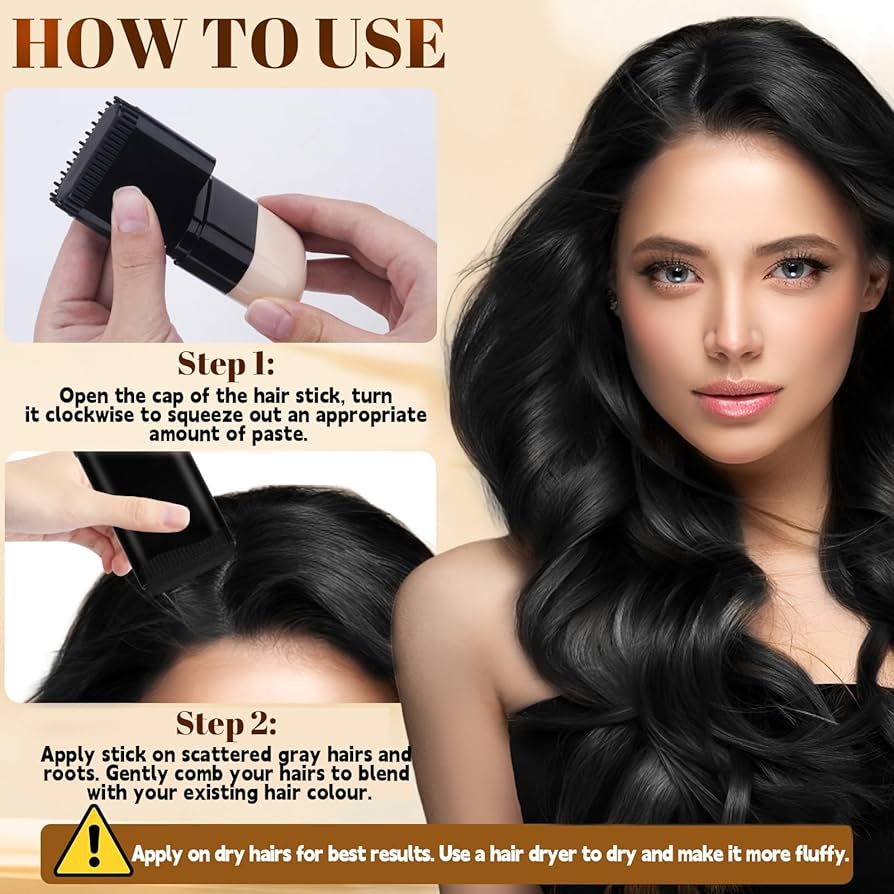 • 【2-in-1 Color Touch-Up Hair Stick】This hair color stick works instantly, covering gray hair and restoring natural color in no time. It comes with comb teeth, two-in-one for dyeing and combing, and cleverly combines dyeing and combing functions. Users only need to simply comb through their hair to ensure every strand is dyed evenly, eliminating cumbersome steps.