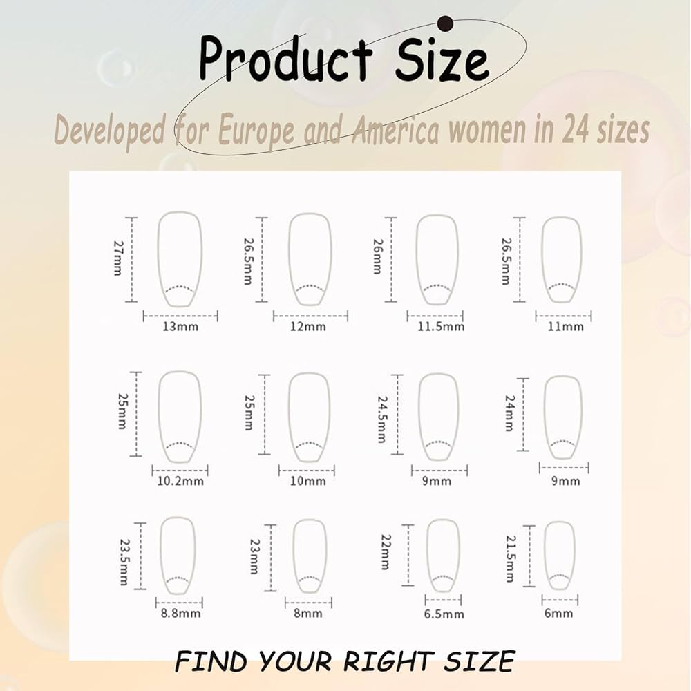 Each set of products is equipped with 24 fake nail pieces, which can meet the needs of different sizes of nails.