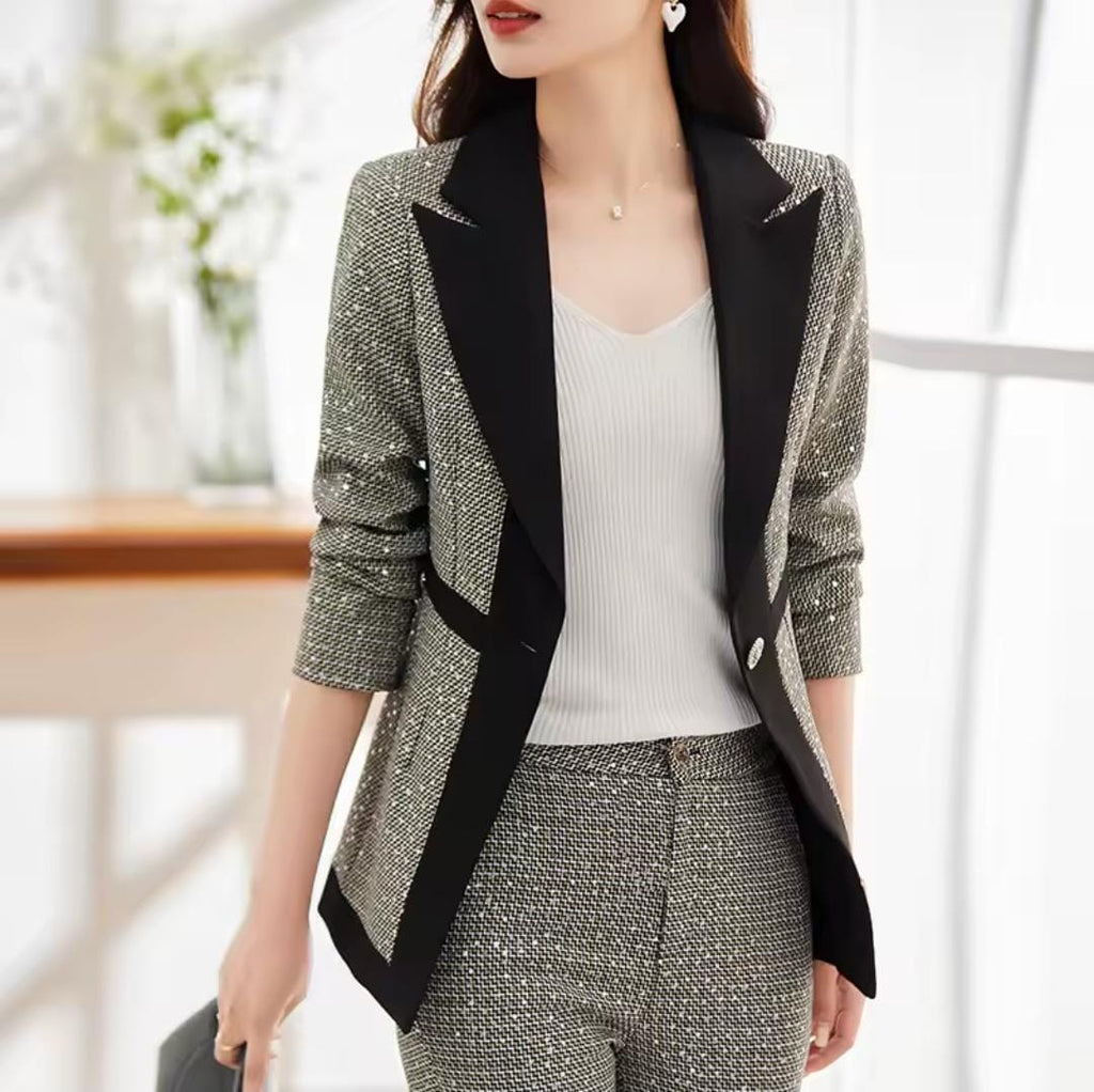 Women's Single Button Slim Fitting Blazer Pants Suit B-59938